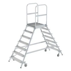 Günzburger Aluminium-Podestleiter,beidseitig Begehbar, 7 Stufen, 51207