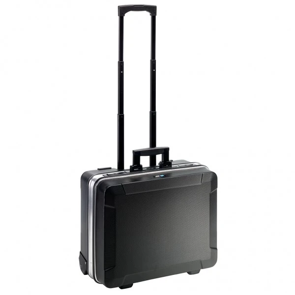 Mobiler Werkzeugkoffer aus ABS-Material mit anwendungsfreundlichem Teleskopgriff und 2 Inline-Rollen