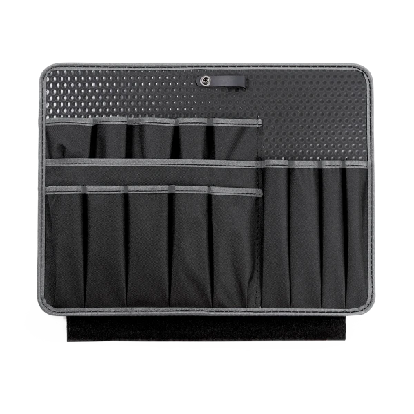 22 WerkzeugeinsteckfĂ€cher in unterschiedlichen GröĂen und eine Dokumententasche im A4-Format sorgen fĂŒr perfekten Halt der wichtigsten Utensilien im tĂ€glichen Einsatz und bieten einen umfangreichen Ăberblick.