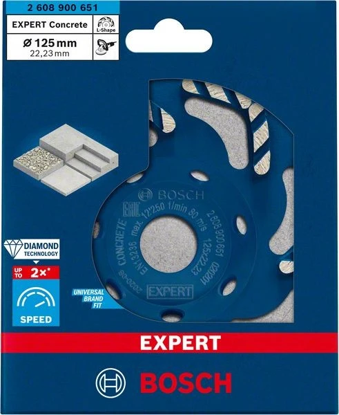 Weiterführende Links zu „Bosch EXPERT Concrete Diamanttopfscheibe, 125 x 22,23 x 4,5 mm 2608900651“