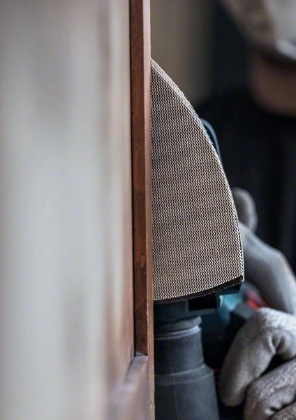 Fortschrittliche Staubreduktion beim Schleifen von Holz, Farbe und Trockenbauwänden! Staub wird durch offene Netzstruktur abgesaugt Staub stellt beim Schleifen eines der Hauptprobleme dar. Er setzt dein Schleifpapier zu, wodurch dieses praktisch unbrauchbar wird. Er bedeckt alles im Raum und durchdringt das ganze Haus. Darum haben wir die Bosch Particle Control-Technologie entwickelt – für staubreduziertes Arbeiten auf einem neuen Leistungsniveau. Es war nicht einfach, Staub beim Schleifen zu reduzieren, aber wir haben eine Lösung gefunden. Dieses Bosch EXPERT M480 Schleifnetz verwendet unsere Particle Control-Technologie, um die Staubmenge in der Luft auf ein Minimum zu reduzieren. Hocheffiziente Staubabsaugung mit Bosch Particle Control.