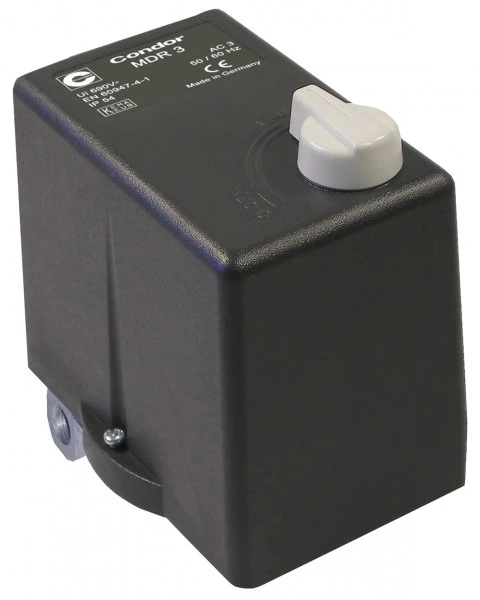 CONDOR Druckschalter sind hoch belastbare QualitÀtsprodukte aus deutscher Produktion. Sie entsprechen den Bestimmungen EN 60947-4-1 und sind sowohl Ein- und Ausschalter als auch Start- und Stoppautomaten. Nach dem Einschalten wird der Kompressorantrieb