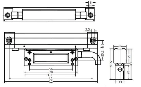 Kleinbauweise, Messlängen 70 – 570 mm, Hohlprofil 18 x 20 mm, Einbauhöhe 43,5 mm