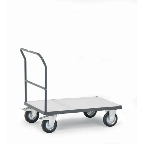 Elektrisch leitfĂ€hige AusfĂŒhrung. Stahlrohr und Profilstahl geschweiĂt, elektrisch leitfĂ€hig pulverbeschichtet, dunkelgrau. Schraub- und Steckkonstruktion. Böden aus elektrisch leitfĂ€higer Holzwerkstoffplatte nach DIN 68765, hellgrau. 2 Lenk- und 2 Bockrollen, Naben mit Rollenlager, elektrisch leitfĂ€hig. Feststeller an den Lenkrollen, gemÀà der EuropĂ€ischen Norm EN 1757-3.