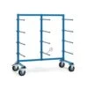 Baukasten-System: Stahlrohr und Profilstahl geschweiĂt, pulverbeschichtet blau RAL 5007, Schraubkonstruktion. 1 fester und 3 Einlegeböden aus tragfĂ€higen, biegesteifen Sandwich-Platten, OberflĂ€che Buchendekor. Einlegeböden variabel einsetzbar, Teilung 100 mm. Tragkraft pro Einlegeboden 90 kg. BerĂ€derung: 2 Lenk- und 2 Bockrollen, Vollgummi-Bereifung 200 x 50 mm, Naben mit Rollenlager. Feststeller an den Lenkrollen, gemÀà der EuropĂ€ischen Norm EN 1757-3 (Sicherheit von Plattformwagen). StirnwĂ€nde und eine LĂ€ngswand geschlossen mit Drahtgitter 100 x 100 x 5 mm.