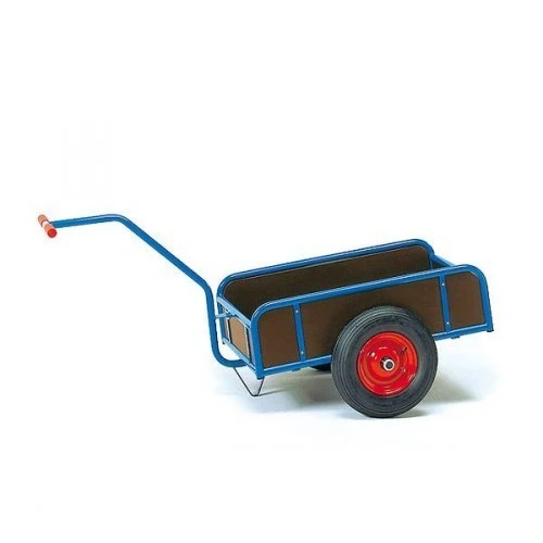Aus Stahlrohr geschweiĂt, pulverbeschichtet. Deichsel anschraubbar, LadeflĂ€che aus wasserfestem Sperrholz. RĂ€der mit Luft-Bereifung, Naben mit Rollenlager. Mit 4 WĂ€nden aus wasserfestem Sperrholz, 250 mm hoch.
