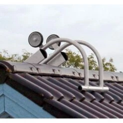Mit den montierten Laufrollen können Sie die Anlegeleiter bequem zum First rollen, umdrehenund sicher einhängen.