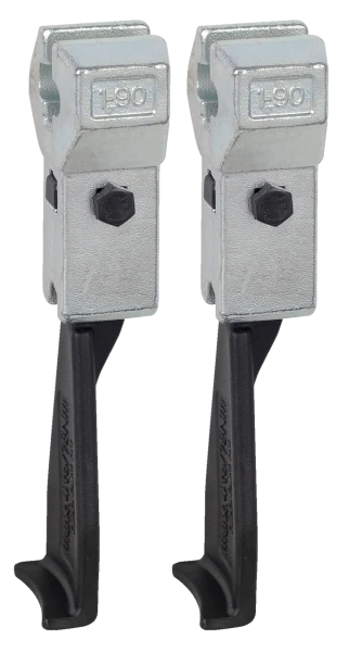 Das abzuziehende Teil liegt ausschließlich auf den Auflageflächen (C) der Abzughaken und wird dadurch schonend abgezogen. Die optional verfügbaren Haken-Verlängerungen ermöglichen ein problemloses Erhöhen der Spanntiefe. In jeder Position, selbst unter Vollbelastung, parallele Abzughaken. Stufenlos verschiebbare Abzughaken.