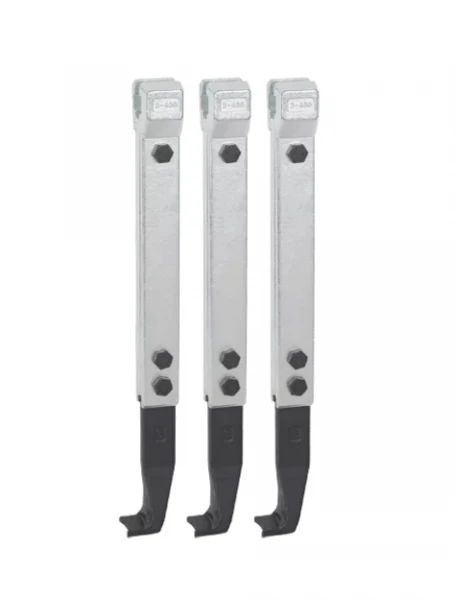 Das abzuziehende Teil liegt ausschließlich auf den Auflageflächen (C) der Abzughaken und wird dadurch schonend abgezogen. Die optional verfügbaren Haken-Verlängerungen ermöglichen ein problemloses Erhöhen der Spanntiefe. In jeder Position, selbst unter Vollbelastung, paralleleAbzughaken. Stufenlos verschiebbare Abzughaken.