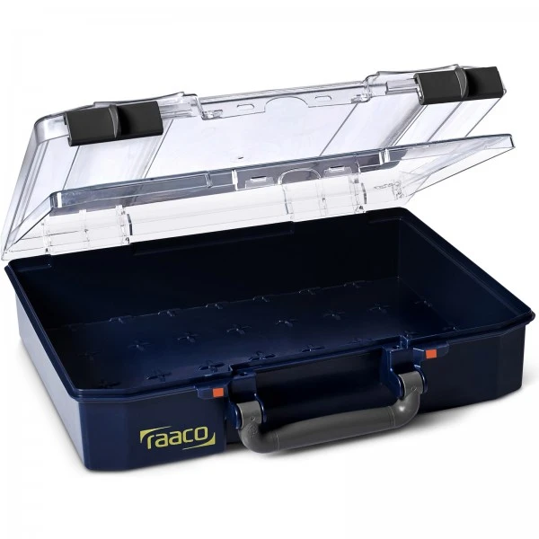 Sortimentskoffer mit Sandwichdeckel ohne U-Profil. Sandwichdeckel mit Einlegefach, z.B. fĂŒr bis zu 5 lose Blatt Papier Ă 80 g. Kann durch EinsĂ€tze Typ 80 oder Schaumstoffeinlagen unterteilt werden (als Zubehör erhĂ€ltlich). Ausgestattet mit Tragegriff und 2 SchiebeverschlĂŒssen. 2 rote Markierungen an den VerschlĂŒssen zeigen an, ob der Koffer korrekt geschlossen ist.